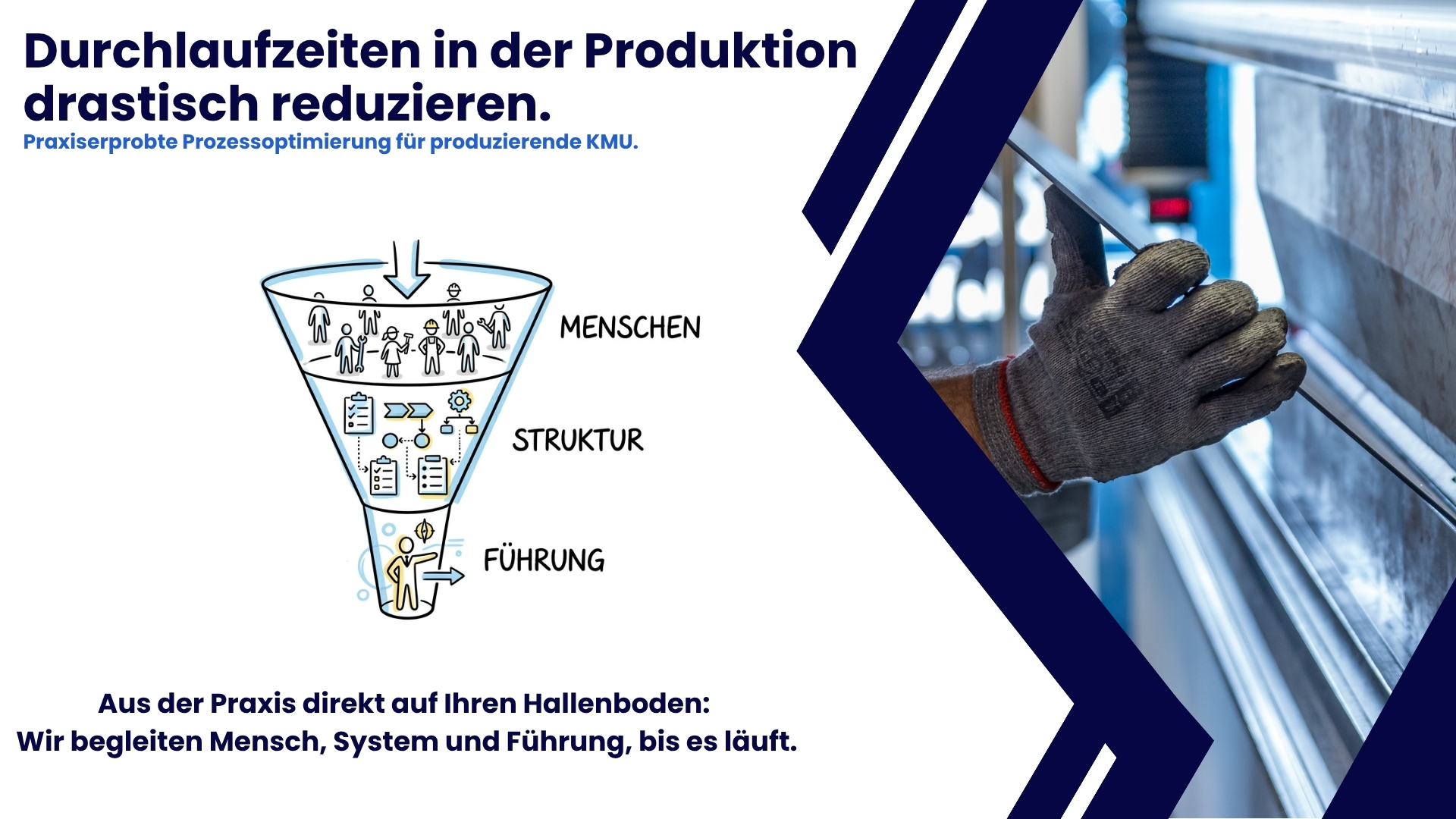 Wir analysieren Ihre Abläufe direkt an der Basis, in Ihrer Produktion, mit ihren Mitarbeitern, bei allen Abläufen und Arbeitsgängen